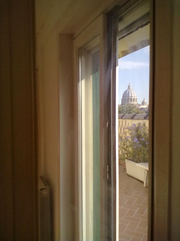 Superattico ubicato al sesto piano di un palazzo signorile con portiere. Splendida tripla esposizione (est-sud-ovest) e vista sulle propagini del Gianicolo (Villa Piccolomini) e sulla cupola di S. Pietro. Tripli terrazzi di 70, 20 e 5 mq. con piante ornamentali e sistemi d'innaffiamento automatici. L'appartamento è composto da una camera da letto matrimoniale, un bagno con doccia, un cucinotto in muratura ed un ampio ed articolato soggiorno con veranda dov'è possibile immaginare una zona notte passante. L'unità edilizia è dotata di una cantina di circa 6 mq.