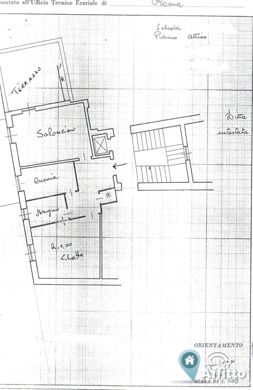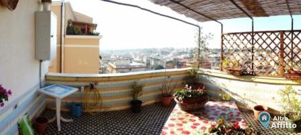 Attico Zona Monteverde Nuovo : Non arredato. Luminosissimo arieggiato. Composto da un saloncino e una camera da letto, cucina, bagno, ripostiglio interno, terrazzo ad angolo panoramico con ripostiglio, ingresso e corridoio. Finestre in legno con doppi vetri. Classe energetica "F" migliorata a seguito modifiche ma non aggiornata (PEG 103.857 kWh/mq_anno). Contratto con cedolare secca . 5° piano con ascensore, Acqua sanitaria con caldaia a gas.. L'immobile si trova in una strada privata con sbarra all'ingresso, parcheggio solo per i consorziati in possesso di telecomando. Collegato da due strade importanti: via dei colli Portuensi e circonvallazione Gianicolense, vicino al grande parco pubblico di villa Pamphili, ben collegato da mezzi di trasporto pubblici Tram 8 bus 44. - NO AGENZIE -