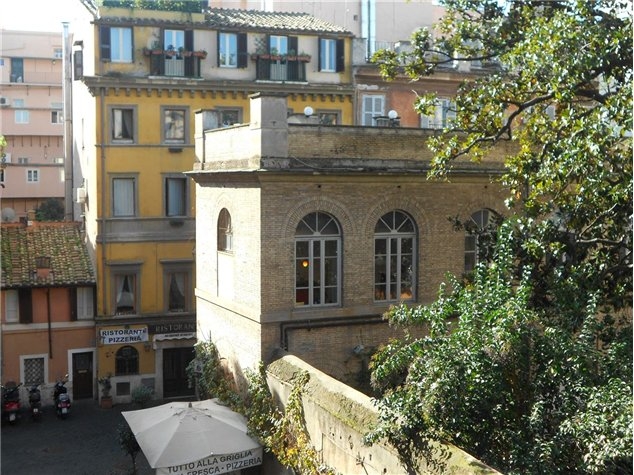TRASTEVERE STORICA con splendida vista su Piazza Santa Maria in Trastevere con ingresso da ballatoio indipendente, appartamento in palazzo d'epoca del '700 restaurato con ascensore, composto di ingresso, ampia camera con camino e zona notte soppalcata, cucinotto e servizio. L'appartamento è dotato di bellissime travi a vista e riscaldamento autonomo.